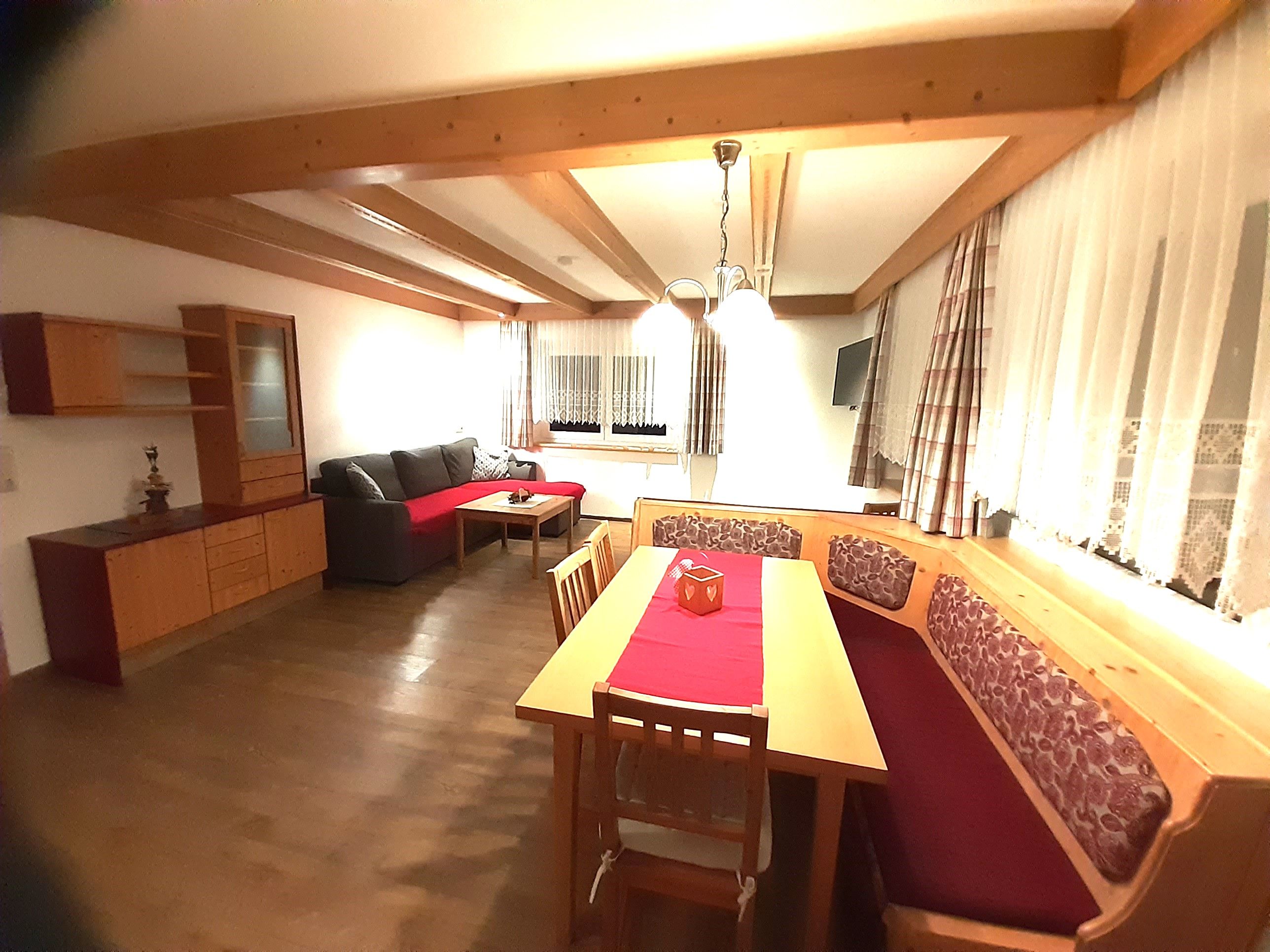 Die Ferienwohnung mit 85m² liegt im Erdgeschoss und bietet Ihnen eine große Wohnküche.