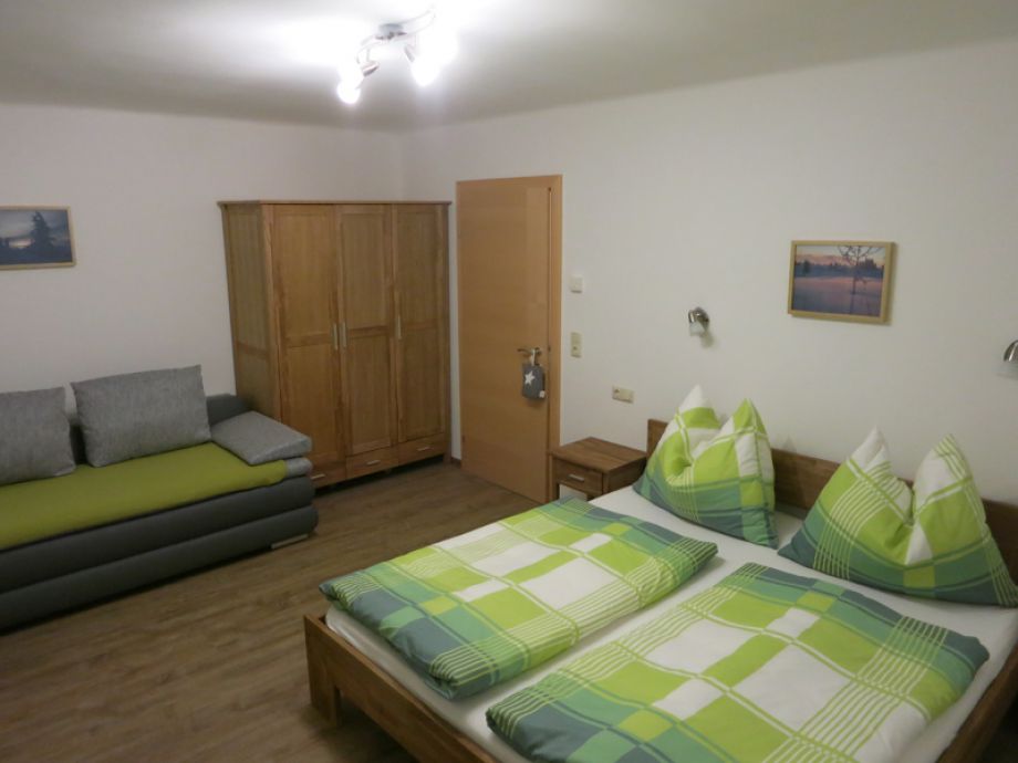 Ein großes, neues Schlafzimmer mit großem Kasten und einer zusätzlichen Schlafcoach für 2 bis 4 Personen. (Fenster ostseitig mit Morgensonne).
