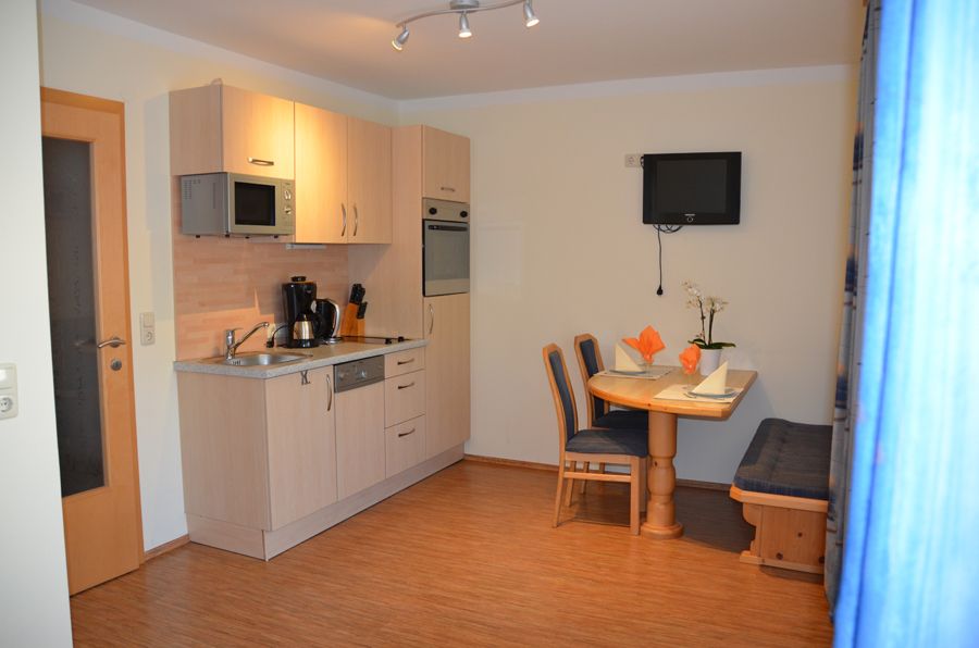 Küche mit Essbereich für 4 Personen, 2 Platten-Ceranfeld, Backofen, Geschirrspüler, Kaffeemaschine, Mikrowelle, Wasserkocher,Geschirr,...
