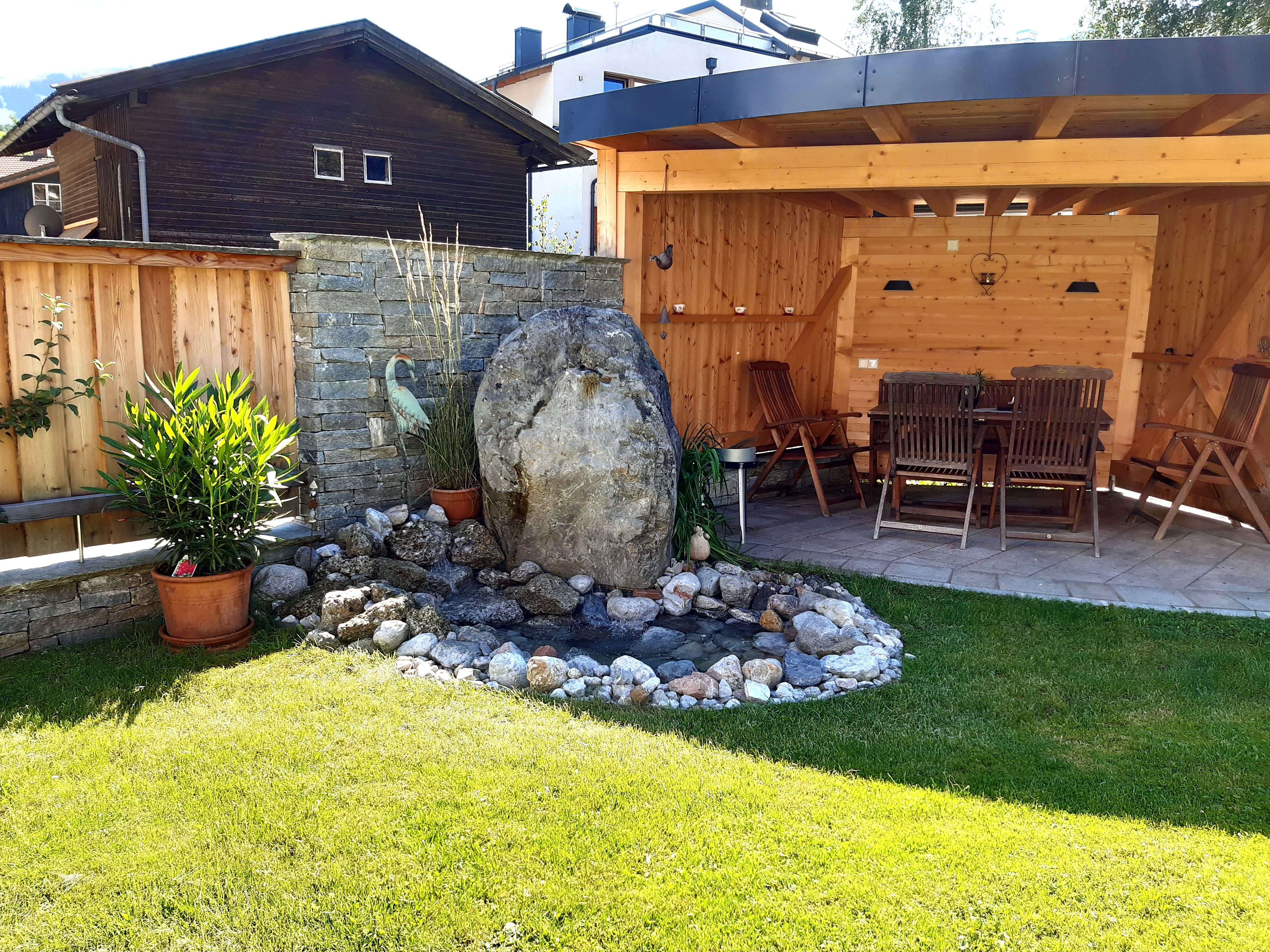 Loungeecke: Unsere Pavillon mit gemütlicher Sitzgelegenheit im großen Garten ist ein idealer Ort, sich von langen Wanderungen und Bike Touren in der Urlaubsregion Hochkönig zu erholen.